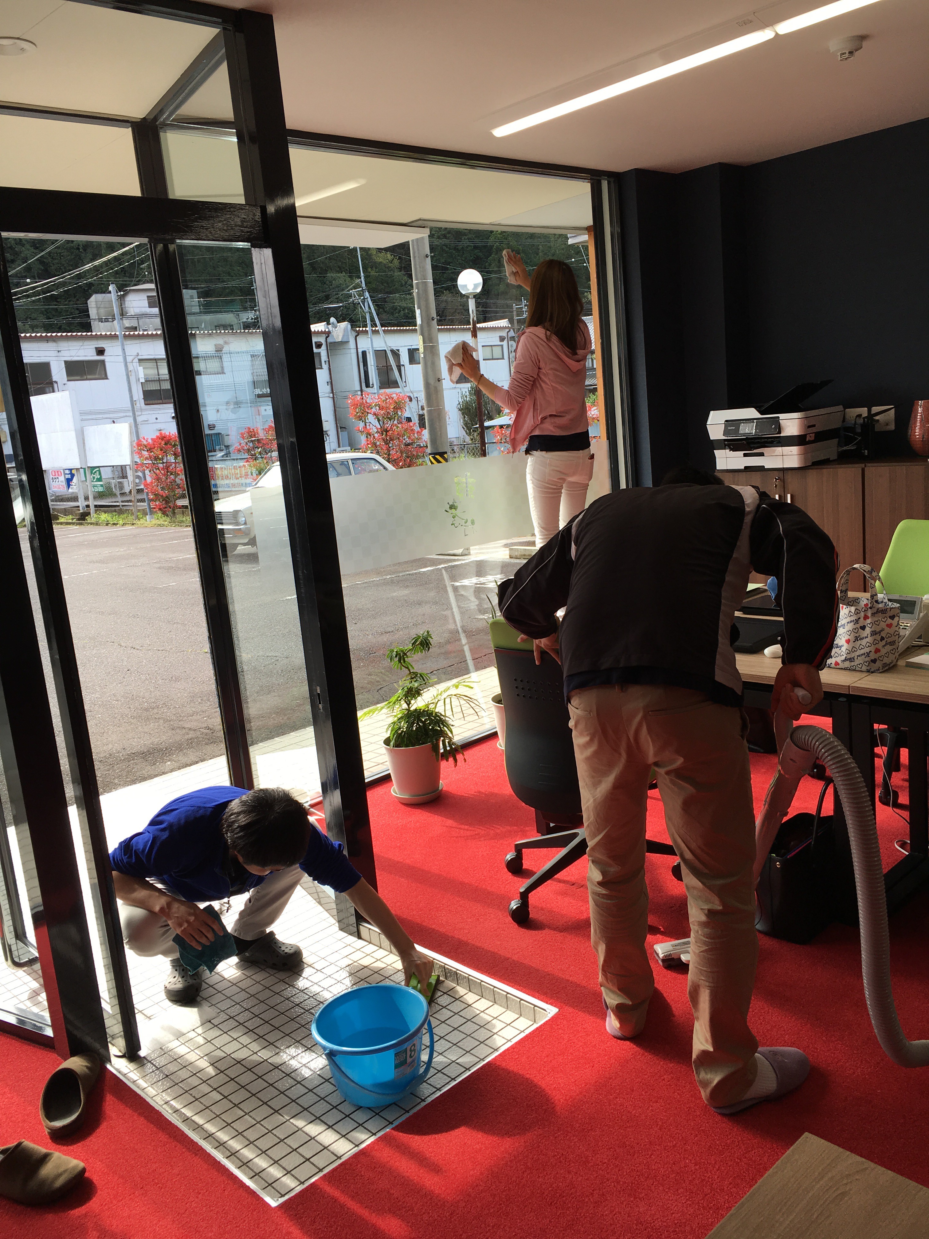 外のゴミ拾いから始まり、玄関磨き、掃除機がけ、窓拭き、机拭き…朝からやること盛りだくさん!