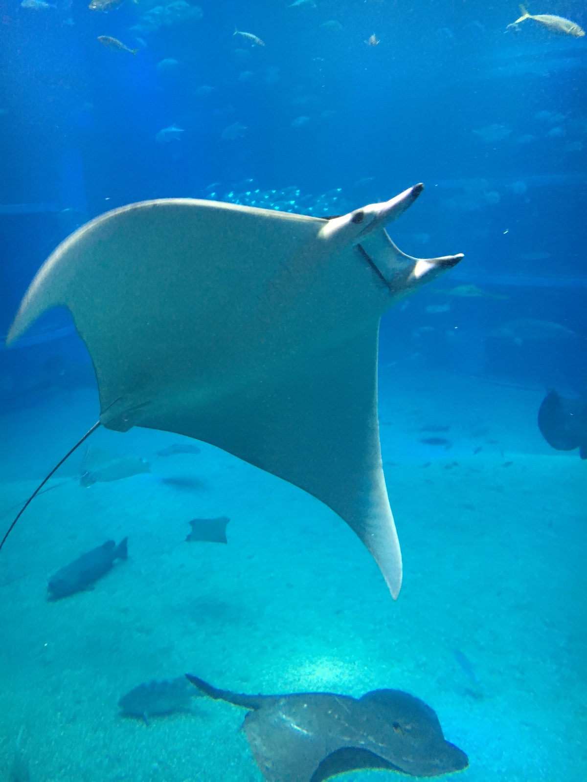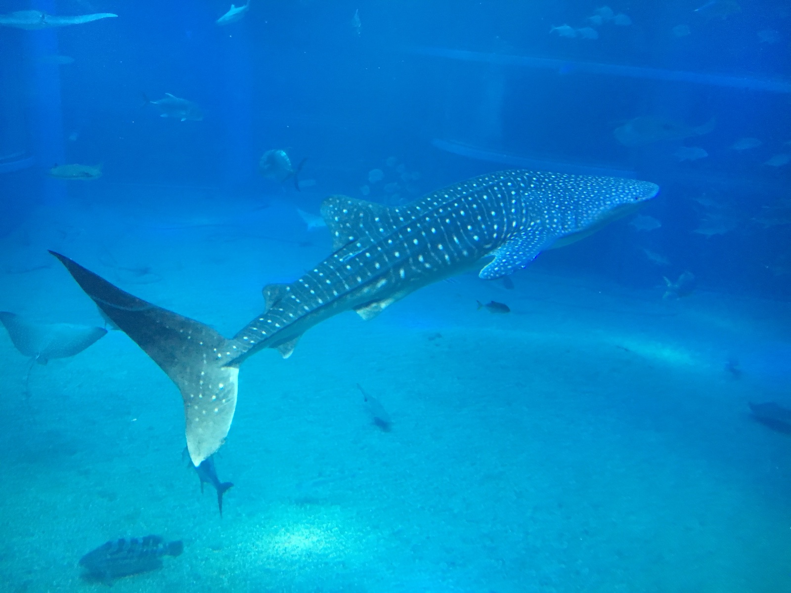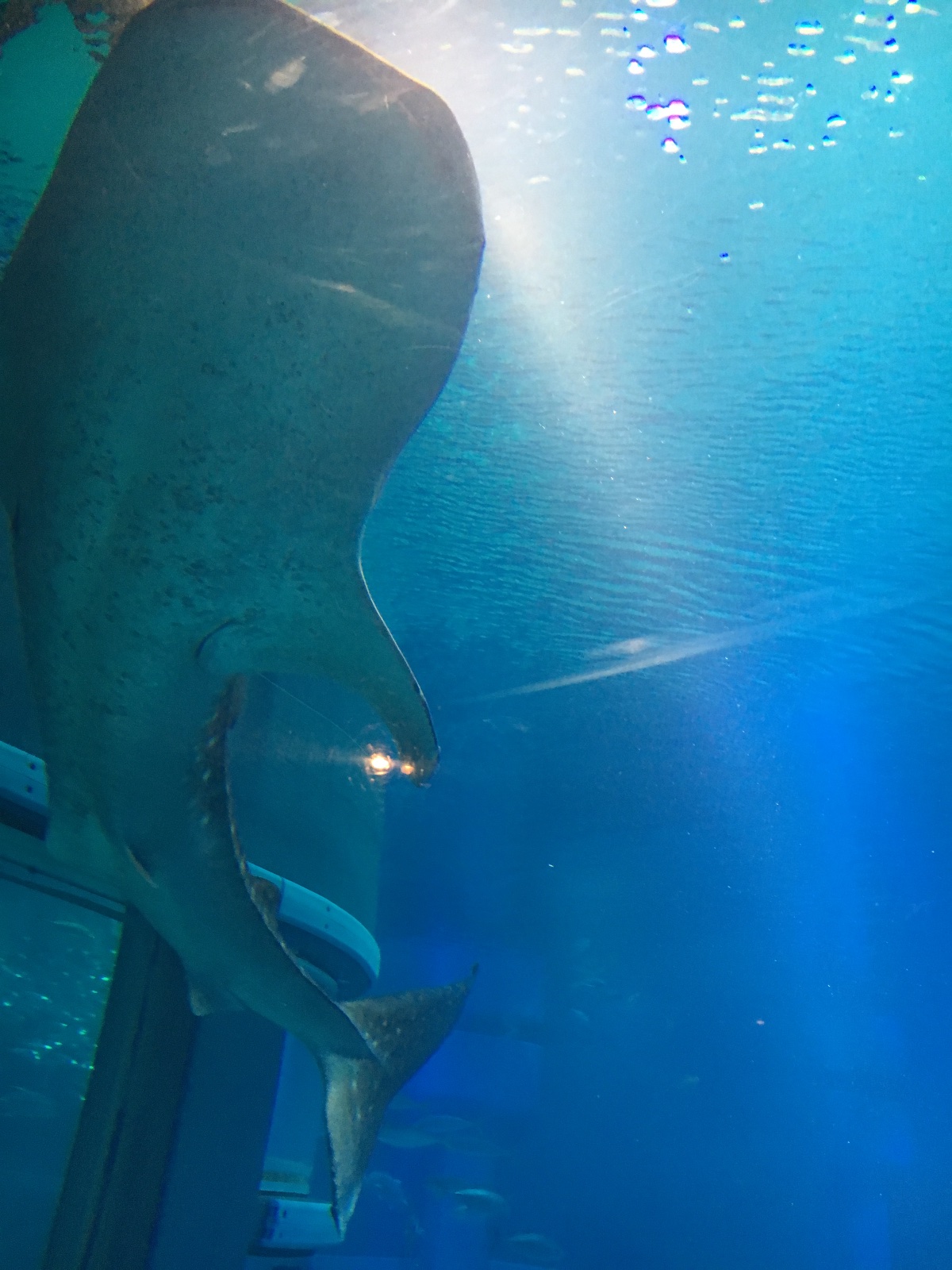 ジンベエザメが、大きな水槽でゆったりと泳いでいる姿を、1時間くらいずっと見ていました。