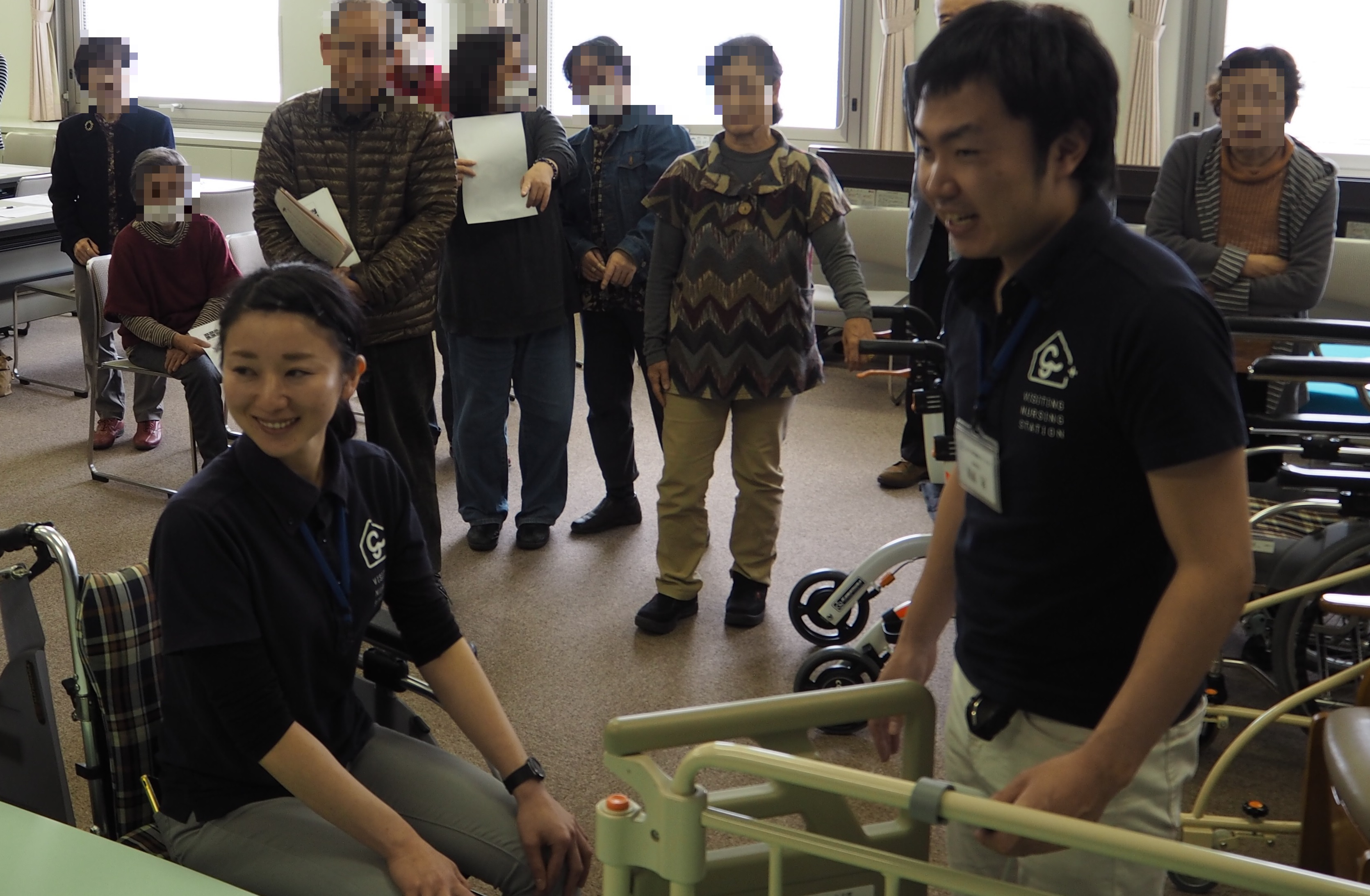 自宅で介護をしている方々に、体位変換や移乗・おむつ交換を