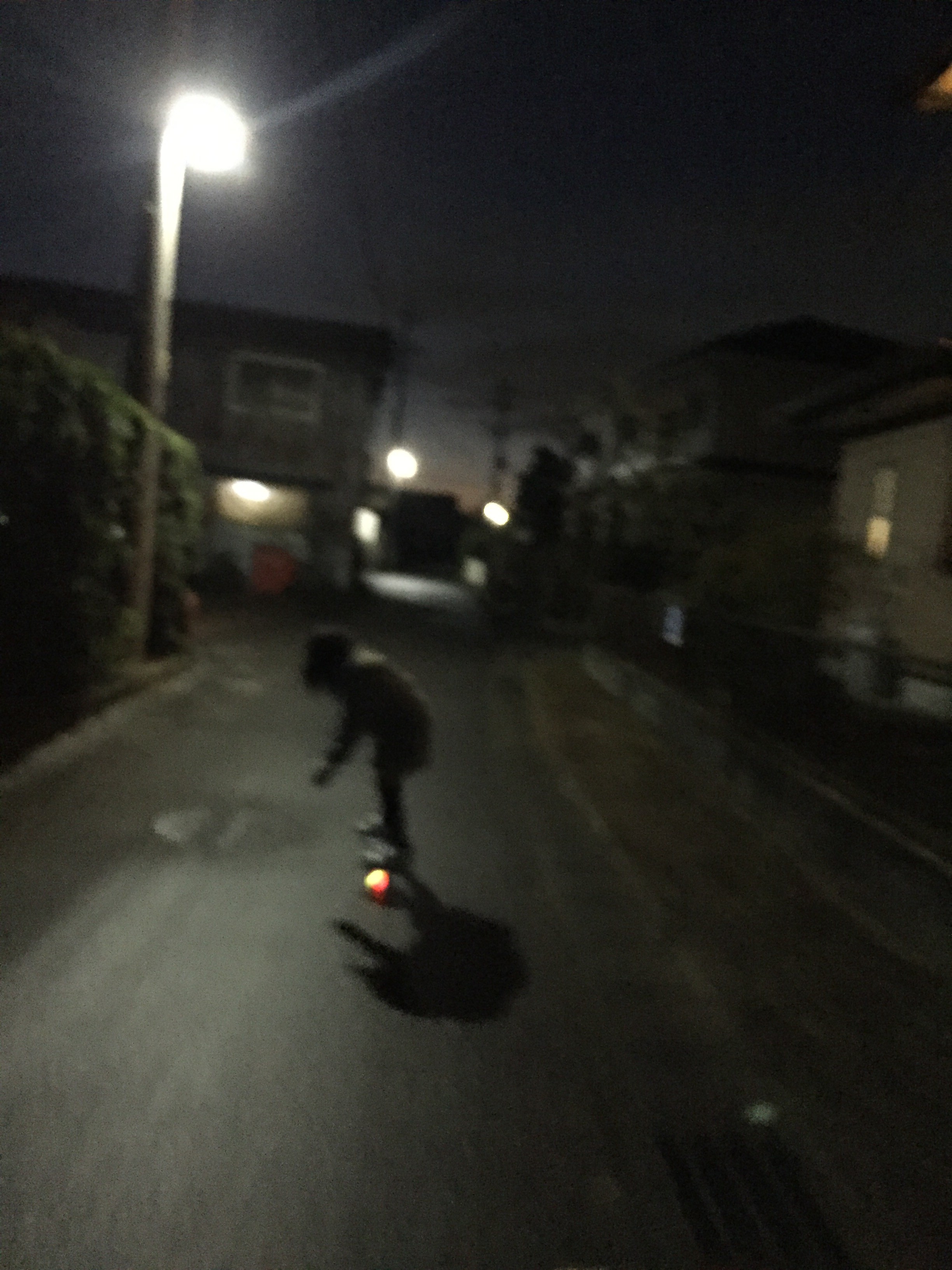 朝起きないかと思いきや、早朝6時の犬の散歩にスケボーでついてきました…。