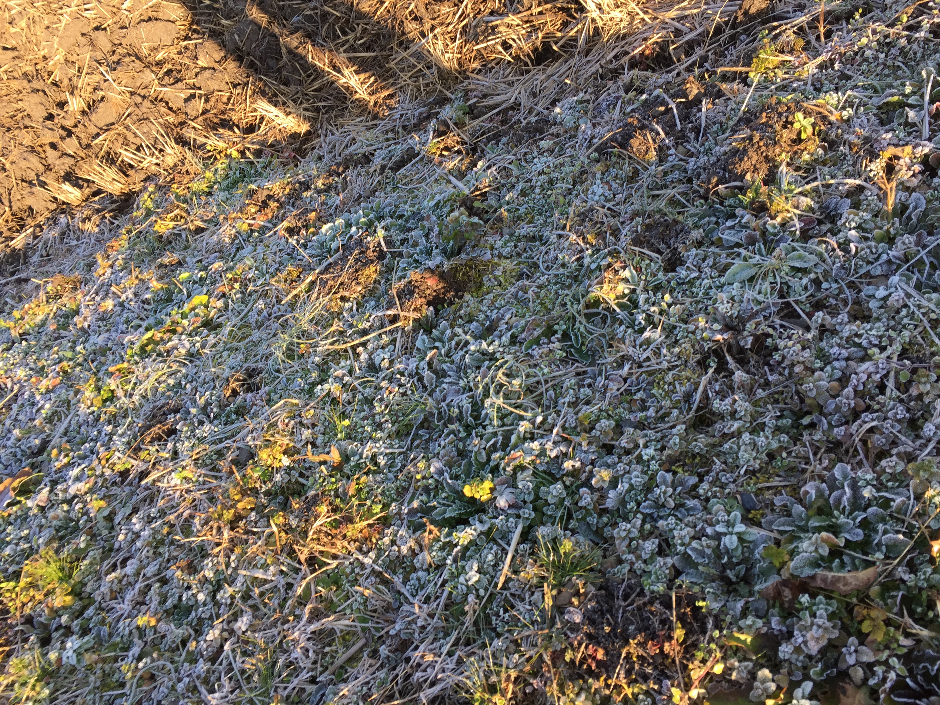 写真は今日ご利用者様とのお散歩時の畦道です。霜がおり、田んぼの水は凍ってました。