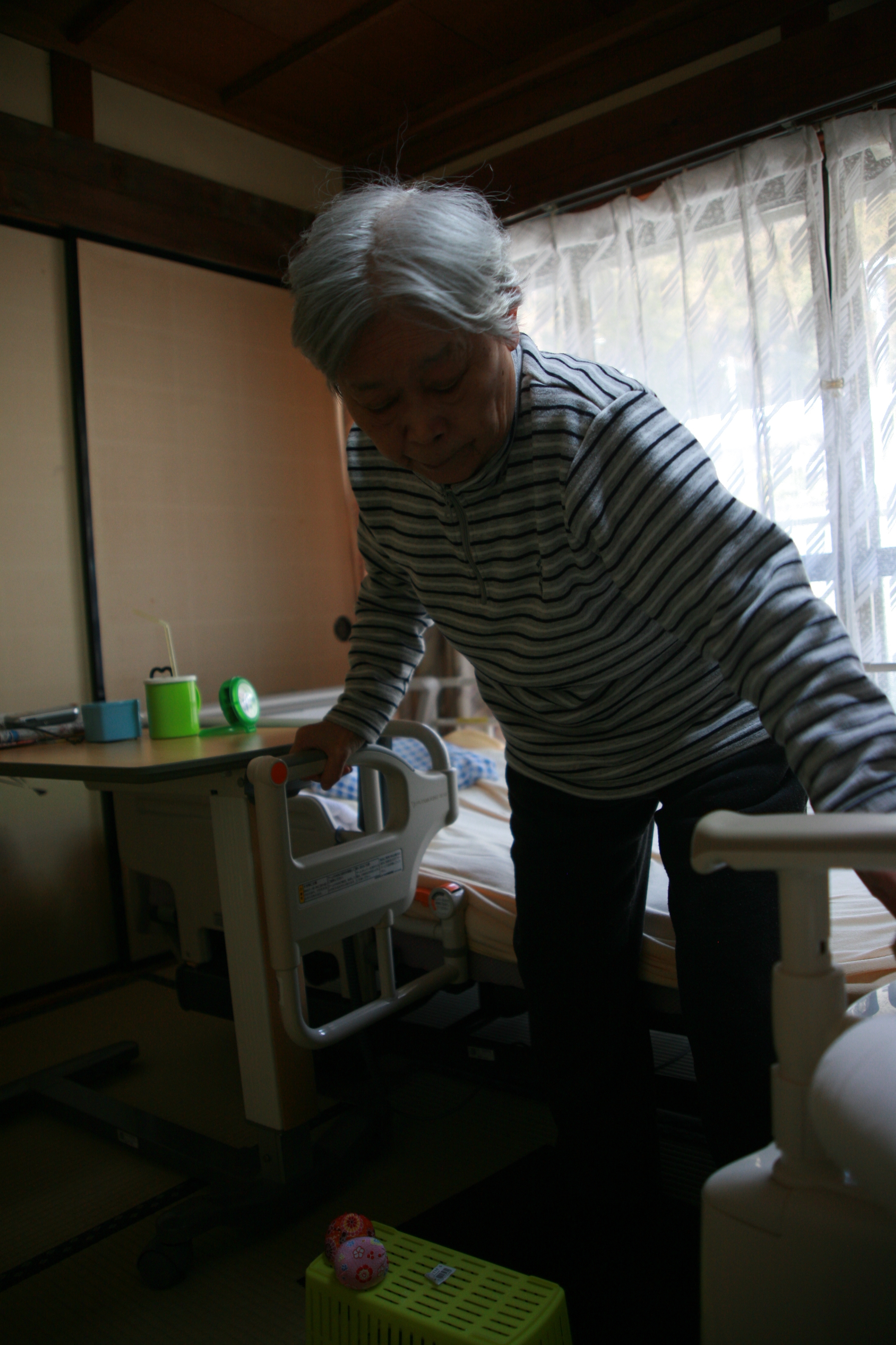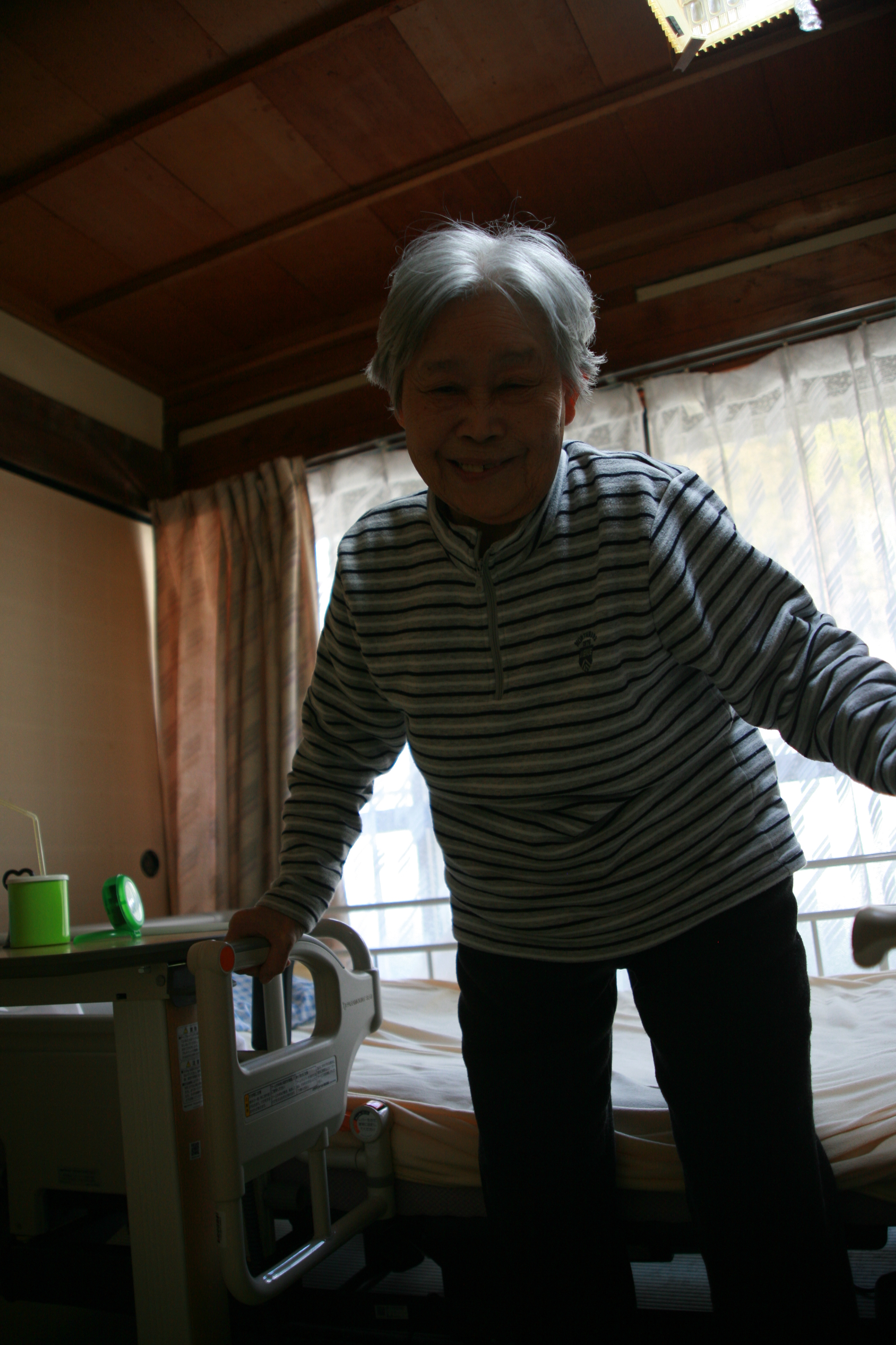 以前は歩行器で2,3メートルで息切れしていましたが、ご本人の努力、ご家族の努力のかいあって、お部屋3つ分ほど離れた自宅トイレまで行けるようになりました!