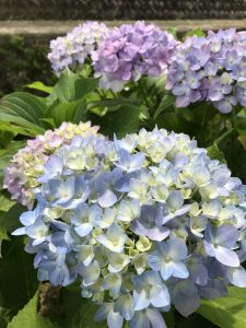 利用者様との屋外歩行訓練中、満開のあじさいをみつけました。