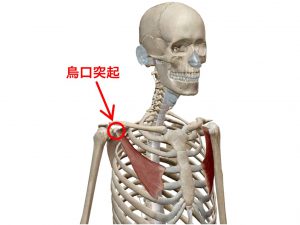 小胸筋は、肩甲骨から前方に突き出た烏口突起というでっぱりから