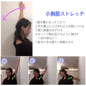小胸筋が縮こまってしまうと肩こりや頭痛の原因にもなりますし、肩が内巻きになり、猫背の原因にもなります。