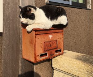 (↑ポストの上でうたた寝)