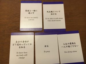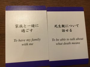 これは、自分が最期を迎える時を想像し、何を重要とするか、を考えるゲームです。