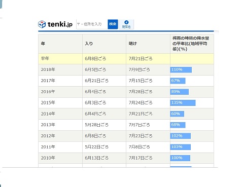 ですが例年の梅雨明け予想表を気象庁が出していたので、