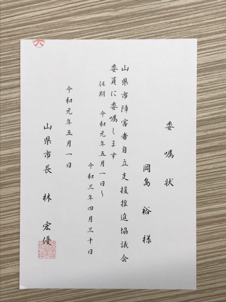 【山県市障害者自立支援推進協議会】の委員としてお手伝いさせていただくこととなりました。