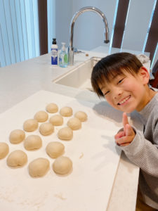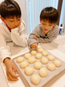 子供たちは毎日自宅で退屈な日々を送っているので、せめて休日くらいは…と一緒にパンを焼きました。